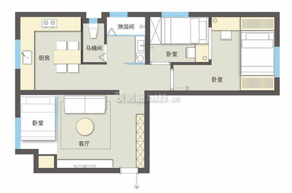 看看高手怎么操作:进门的过道和次卧合成一处考虑,留出客厅空间,入户沿着墙面做一壁柜子,增加储物,卧室移到靠窗位,增加推拉门,隔出私密空间。