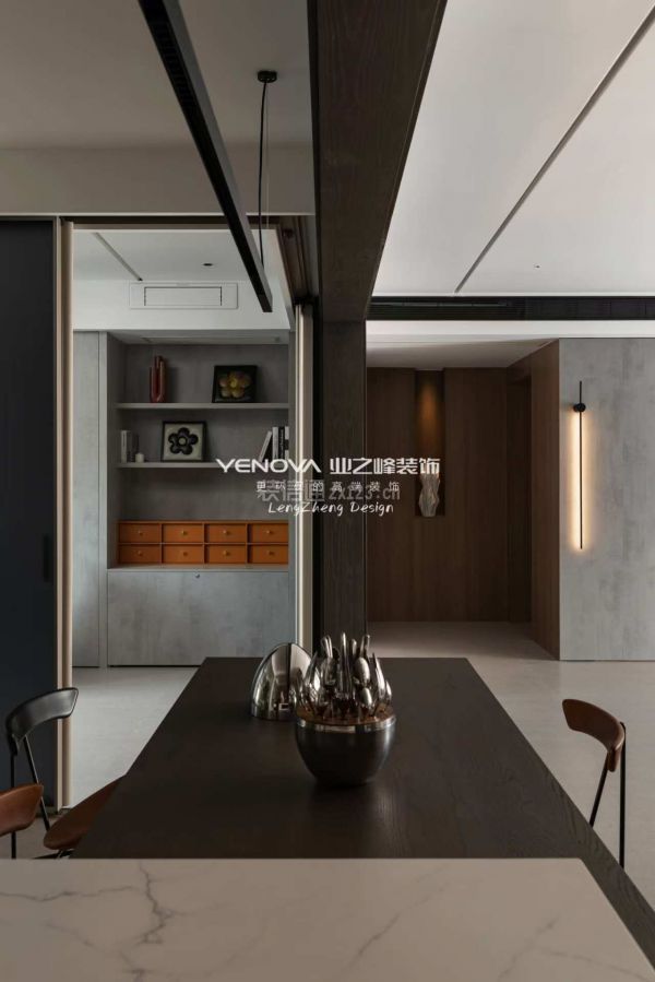 *餐桌选择石材面导台 嵌入式桌面设计,穿插结构,将极简主义体现得淋漓尽致
